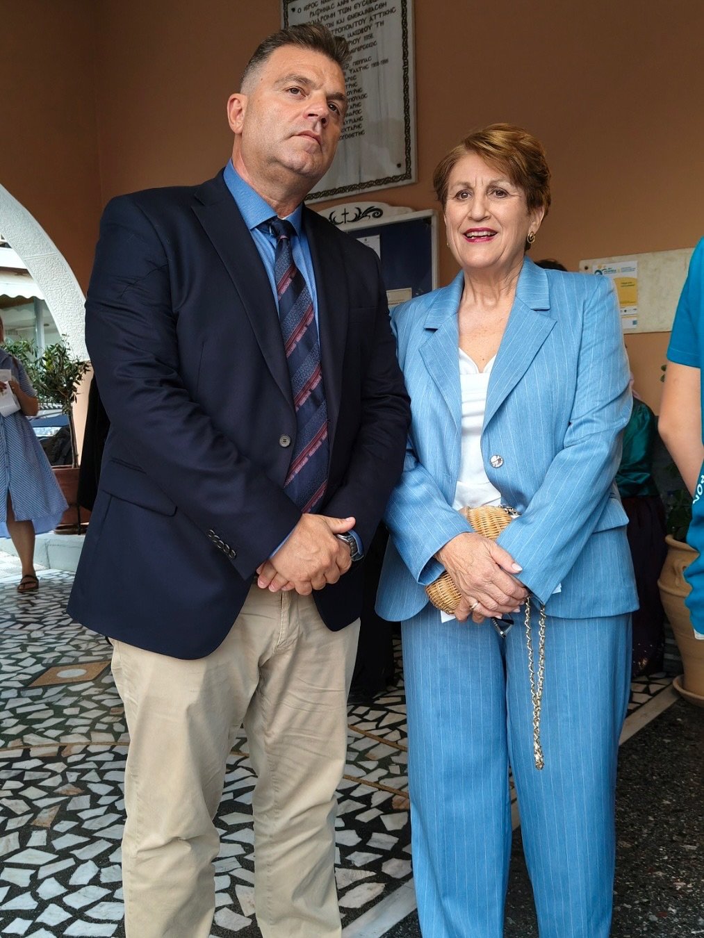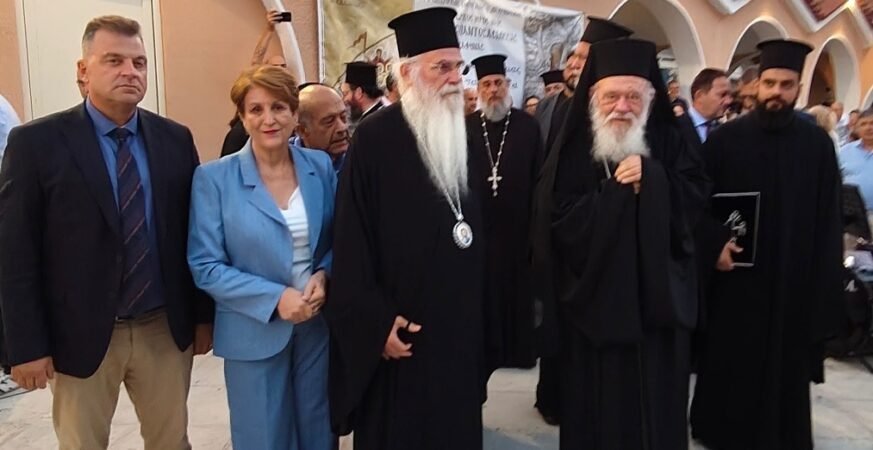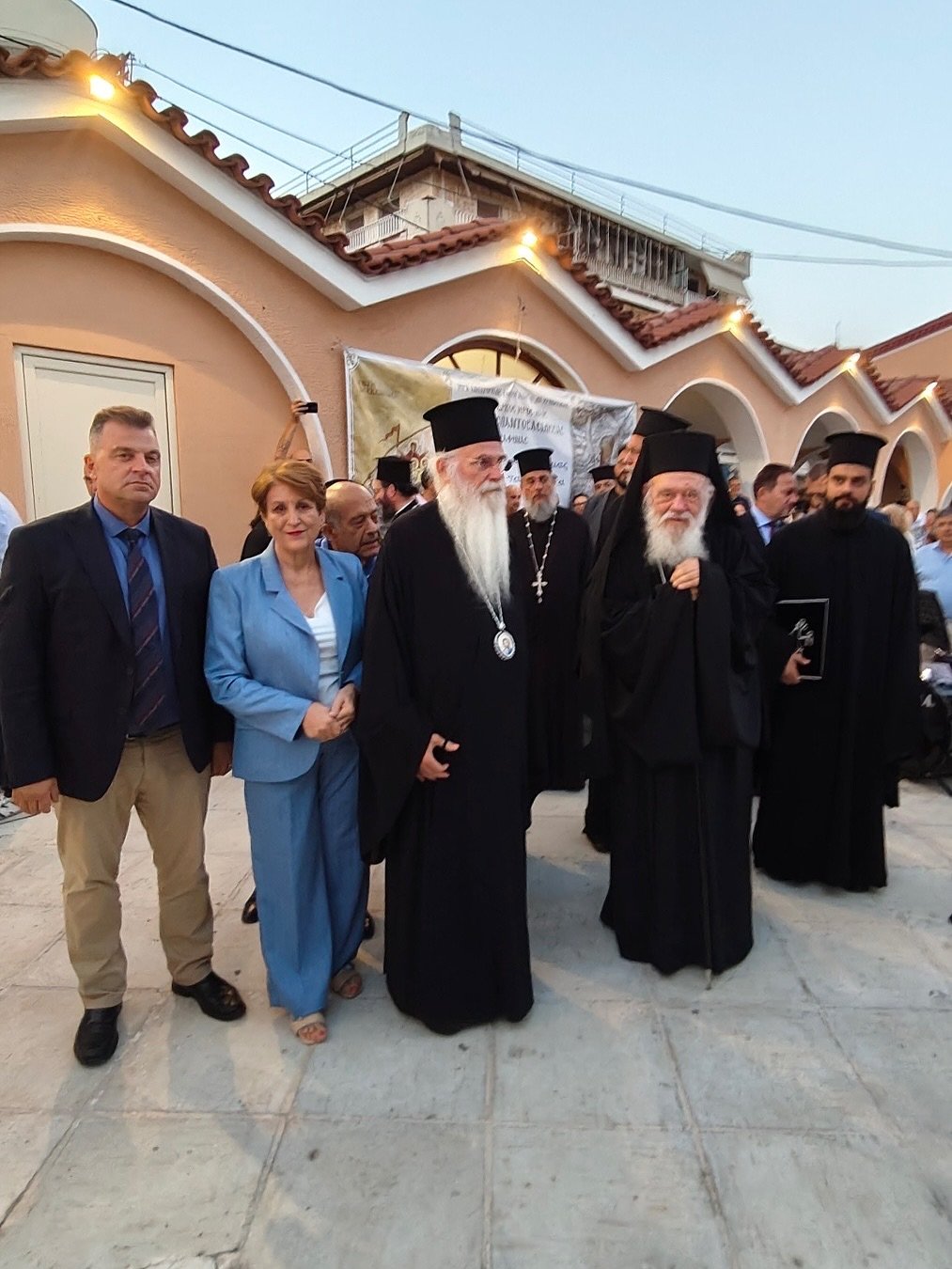 Δήμητρα Τσεβά, ο Μητροπολίτης Μεσογαίας και Λαυρεωτικής κ. Νικόλαος, ο Αρχιεπίσκοπος