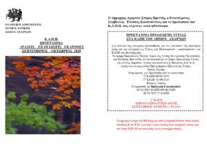 Τα ΚΑΠΗ του Δήμου Αχαρνών και ο εντεταλμένος σύμβουλος και Αναπληρωτής Δημάρχου για τα ΚΑΠΗ, Κωνσταντίνος Ρούσσας, ανακοινώνουν το πρόγραμμα