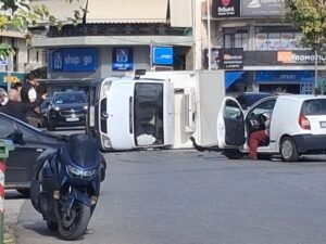 Τροχαίο σημειώθηκε έξω από το Δημαρχείο, από την πλευρά της Φιλαδελφείας. Δύο οχήματα συγκρούστηκαν, με το ένα να ανατρέπεται και