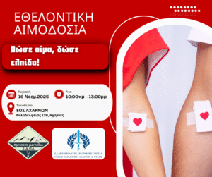 Η ανάγκη για αίμα στα ελληνικά νοσοκομεία παραμένει διαρκής και επιτακτική. Για ακόμη μια φορά, η Εθελοντική Δράση Πάρνηθας σε