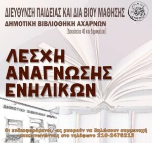 Η Λέσχη Ανάγνωσης Ενηλίκων της Δημοτικής Βιβλιοθήκης Αχαρνών συνεχίζει το λογοτεχνικό της ταξίδι με την 3η συνάντηση, που θα πραγματοποιηθεί