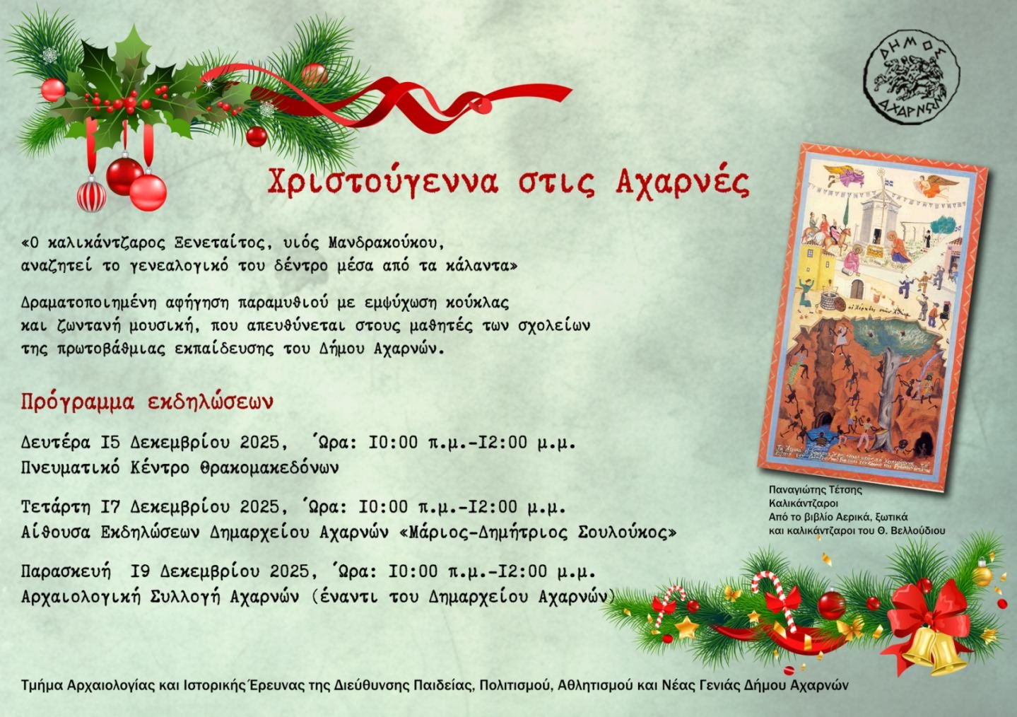 • Χριστούγεννα στις Αχαρνές – Ένα πλούσιο πρόγραμμα εκδηλώσεων για όλη την οικογένεια