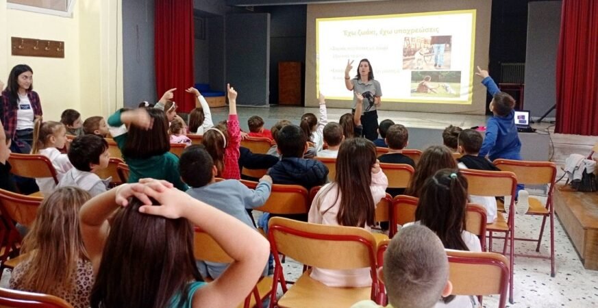 Πρόσφατα, οι μαθητές της Α’ και Β’ τάξης του 15ου Δημοτικού Σχολείου Αχαρνών είχαν την ευκαιρία να παρακολουθήσουν στην αίθουσα εκδηλώσεων του σχολείου το πρόγραμμα «Οι φίλοι μας… τα ζώα», σε μια δράση που συνδύασε τη γνώση με τη βιωματική προσέγγιση και στόχευσε στην καλλιέργεια της φιλοζωικής συνείδησης από μικρή ηλικία.