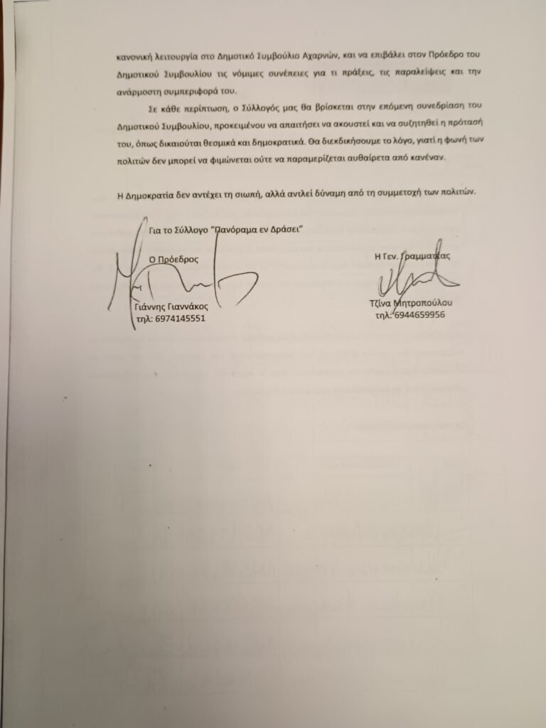 Ο Σύλλογός μας έχει ήδη ενημερώσει το Δήμαρχο, τις Δημοτικές Παρατάξεις αλλά και την Αποκεντρωμένη Διοίκηση Αττικής για την αυθαίρετη, αντιθεσμική και αντικανονική συμπεριφορά του.
