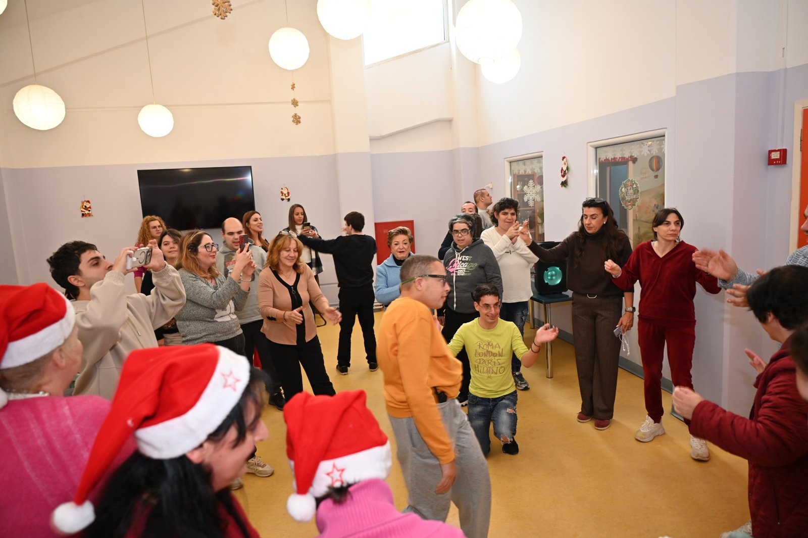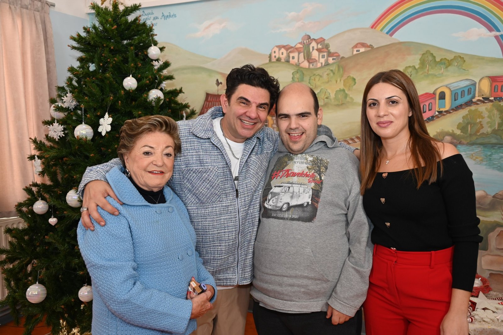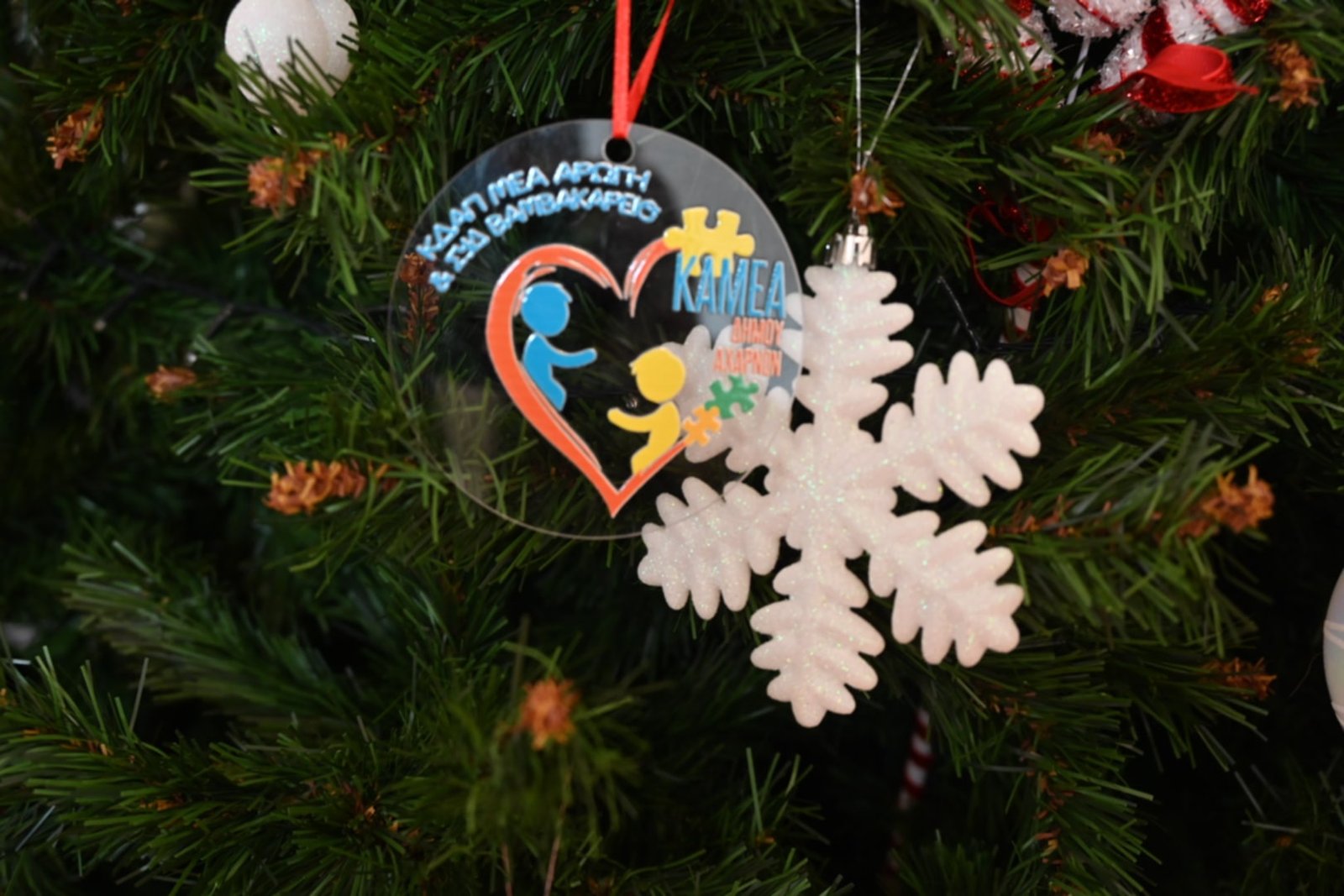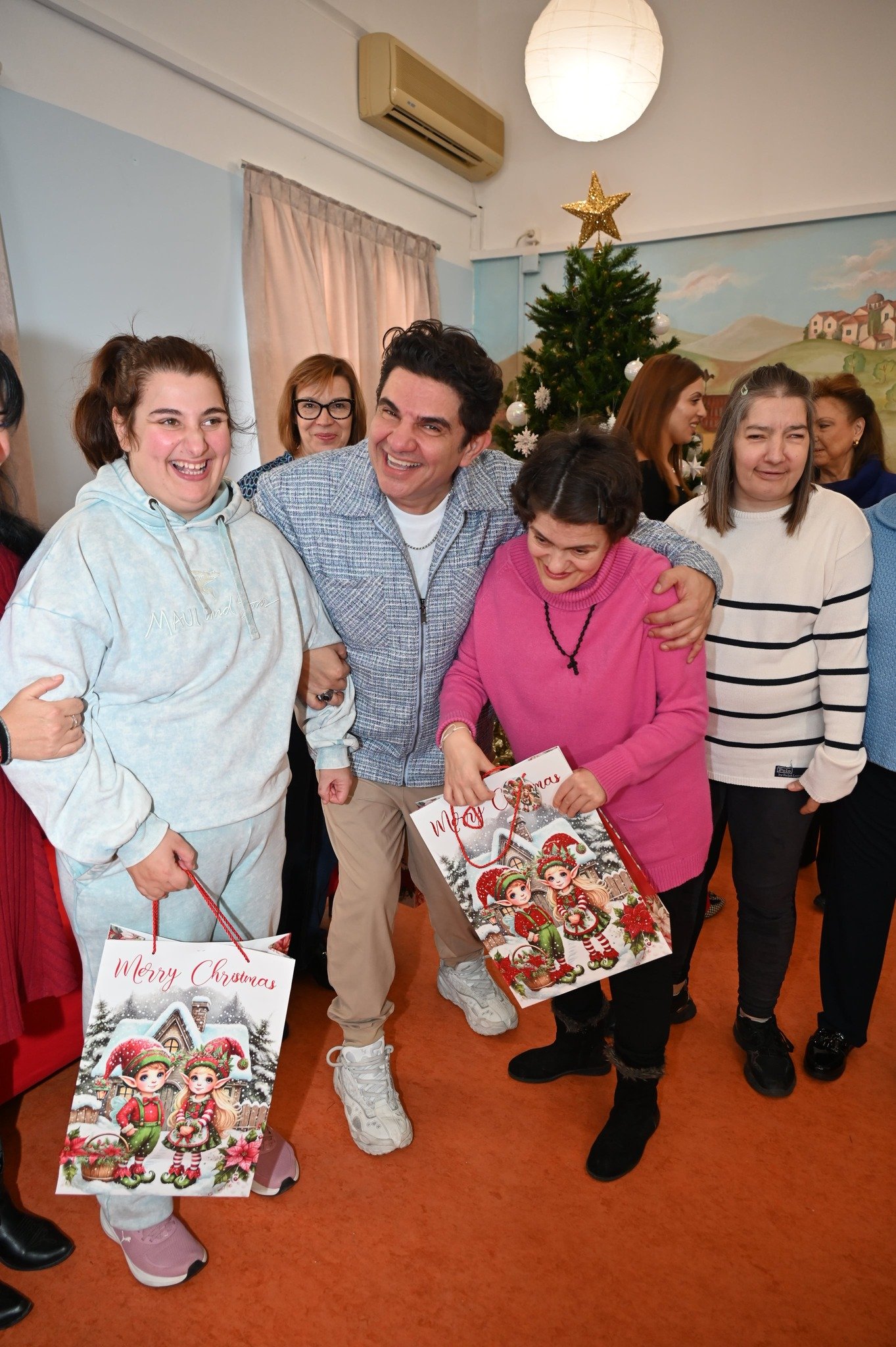 Το πιο λαμπερό δέντρο των Αχαρνών, ένα χριστουγεννιάτικο δέντρο γεμάτο συναισθήματα, χαμόγελα, ελπίδα και αγάπη στόλισαν σήμερα τα παιδιά του ΚΔΑΠ ΑμεΑ «Αρωγή» και του Βαμβακάρειου Ιδρύματος μαζί με έναν ξεχωριστό καλεσμένο. Ο δημοφιλής τραγουδιστής Νίκος Κουρκούλης που επισκέφτηκε τη δομή της «Αρωγής» γνωρίστηκε και μίλησε με τα παιδιά, τους έδωσε πολλά δώρα που πρόσφερε η εταιρεία Step 1 και όλοι μαζί τραγούδησαν και χόρεψαν τις μεγάλες επιτυχίες του καλλιτέχνη και πολλά χριστουγεννιάτικα κομμάτια σε καραόκε!