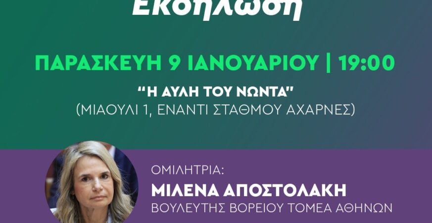 Η εκδήλωση θα πραγματοποιηθεί την Παρασκευή 9 Ιανουαρίου 2026, στις 19:00, στην ταβέρνα «Η Αυλή του Νώντα» (Μιαούλη 1), έναντι του σιδηροδρομικού σταθμού Αχαρνών.
