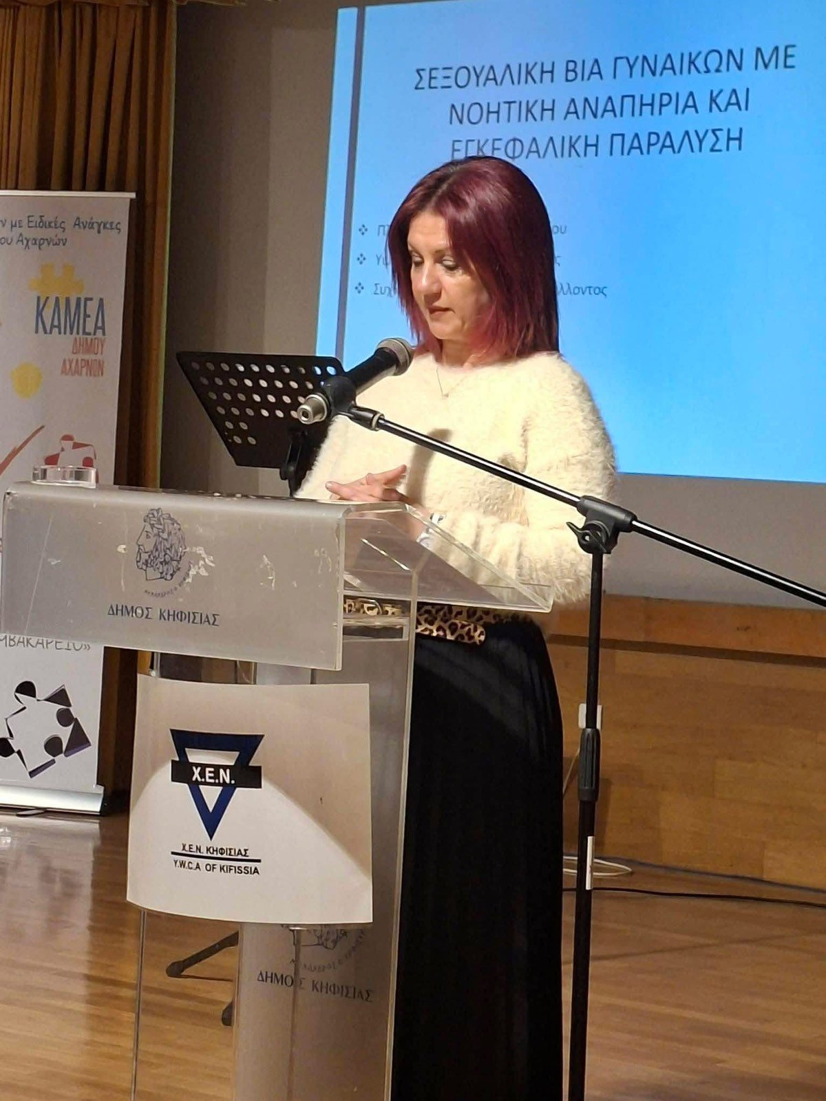 Σε μία ιδιαίτερη εκδήλωση με θέμα «Έμφυλη Βία και γυναίκα με αναπηρία», που διοργάνωσε η ΧΕΝ Κηφισιάς, σε συνεργασία με το NEVRONAS, έδωσε το παρών ο Δήμος Αχαρνών εκπροσωπούμενος από τον πλέον αρμόδιο φορέα γι’ αυτά τα ζητήματα, το Κέντρο Ατόμων με Ειδικές Ανάγκες «ΑΡΩΓΗ» και την Πρόεδρο και βασική ομιλήτρια κ. Όλγα Παυλίδου. Η παρουσία μιας δομής του Δήμου μας σε εκδηλώσεις εκτός των τειχών της πόλης, είναι περίτρανη απόδειξη της σπουδαίας δουλειάς που κάνουν με αποκλειστικό στόχο και σκοπό την προστασία των Ατόμων με Ειδικές Ανάγκες, αλλά και την προώθηση του μηνύματος της εξωστρέφειας τους.