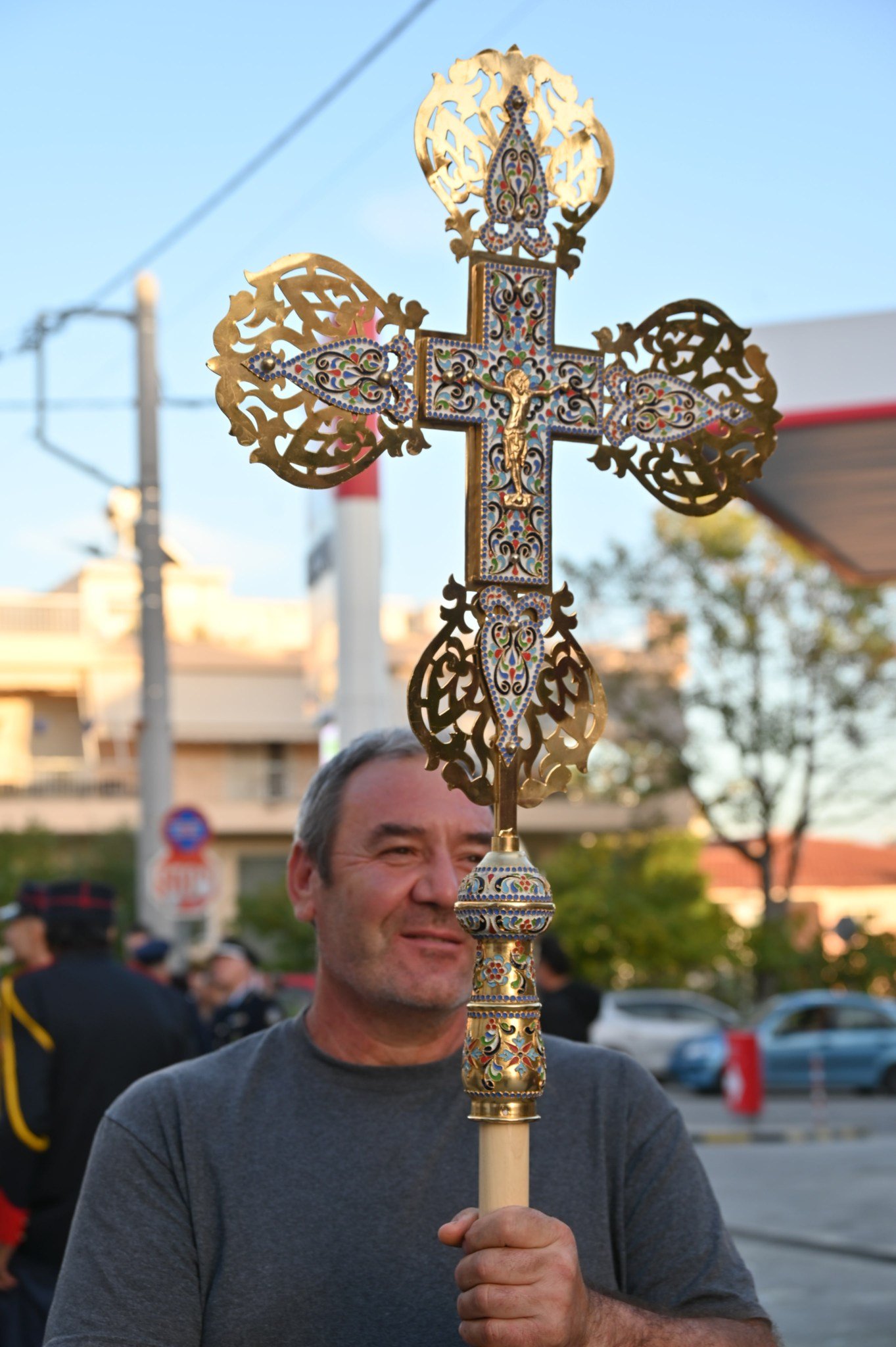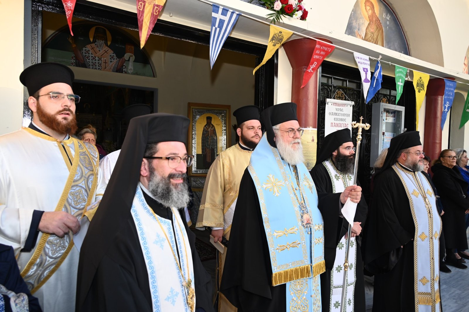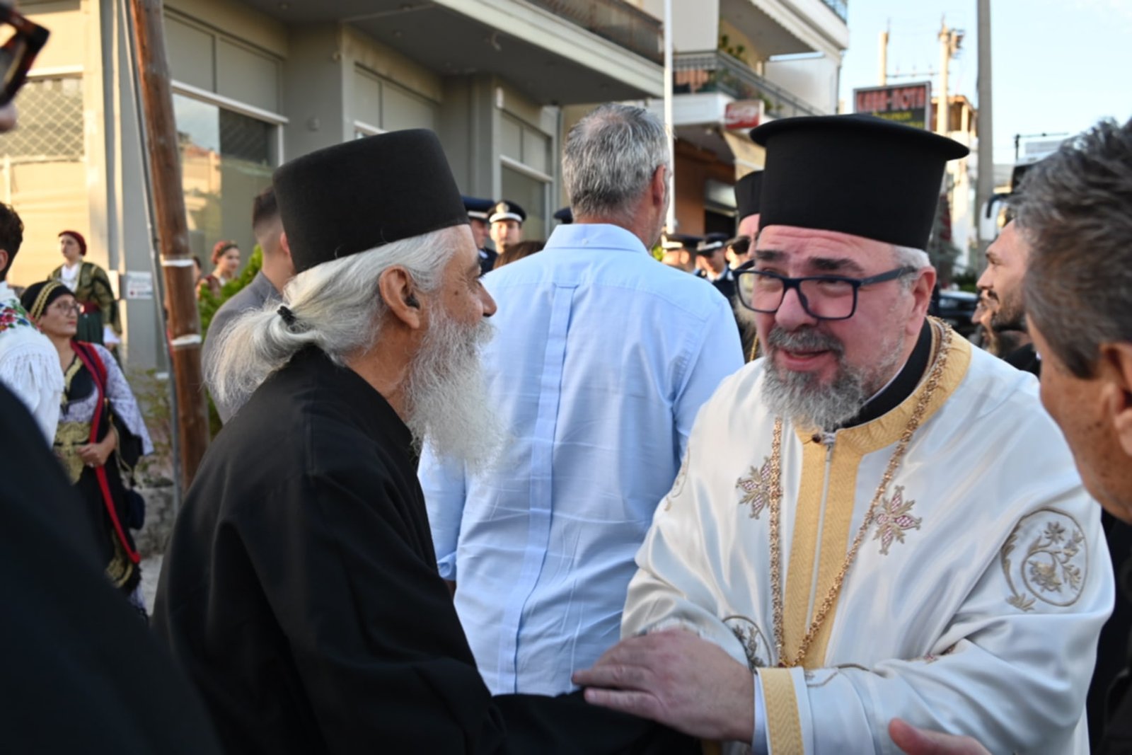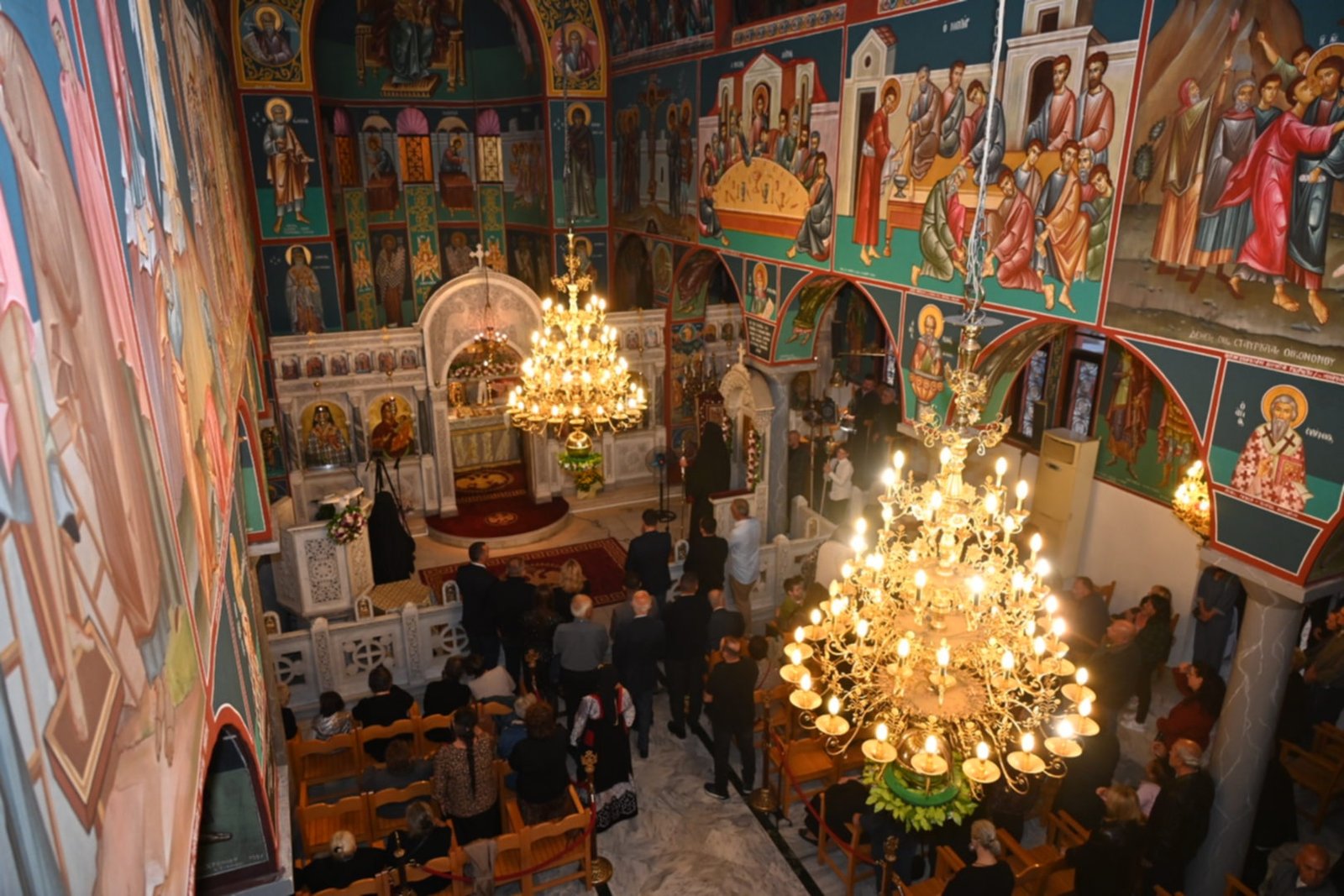 Πλήθος συνδημοτών μας, μέλη της δημοτικής Αρχής, εκπρόσωποι των πολιτιστικών συλλόγων της πόλης μας με τις παραδοσιακές φορεσιές τους αλλά και μαθητές του 5ου Γυμνασίου Αχαρνών ανταποκρίθηκαν στο κάλεσμα του Εκκλησιαστικού Συμβουλίου, του Αρχιμανδρίτη Χρυσόστομου και έσπευσαν να προσευχηθούν και να προσκυνήσουν σε κλίμα πνευματικής συγκίνησης αλλά και χαράς.