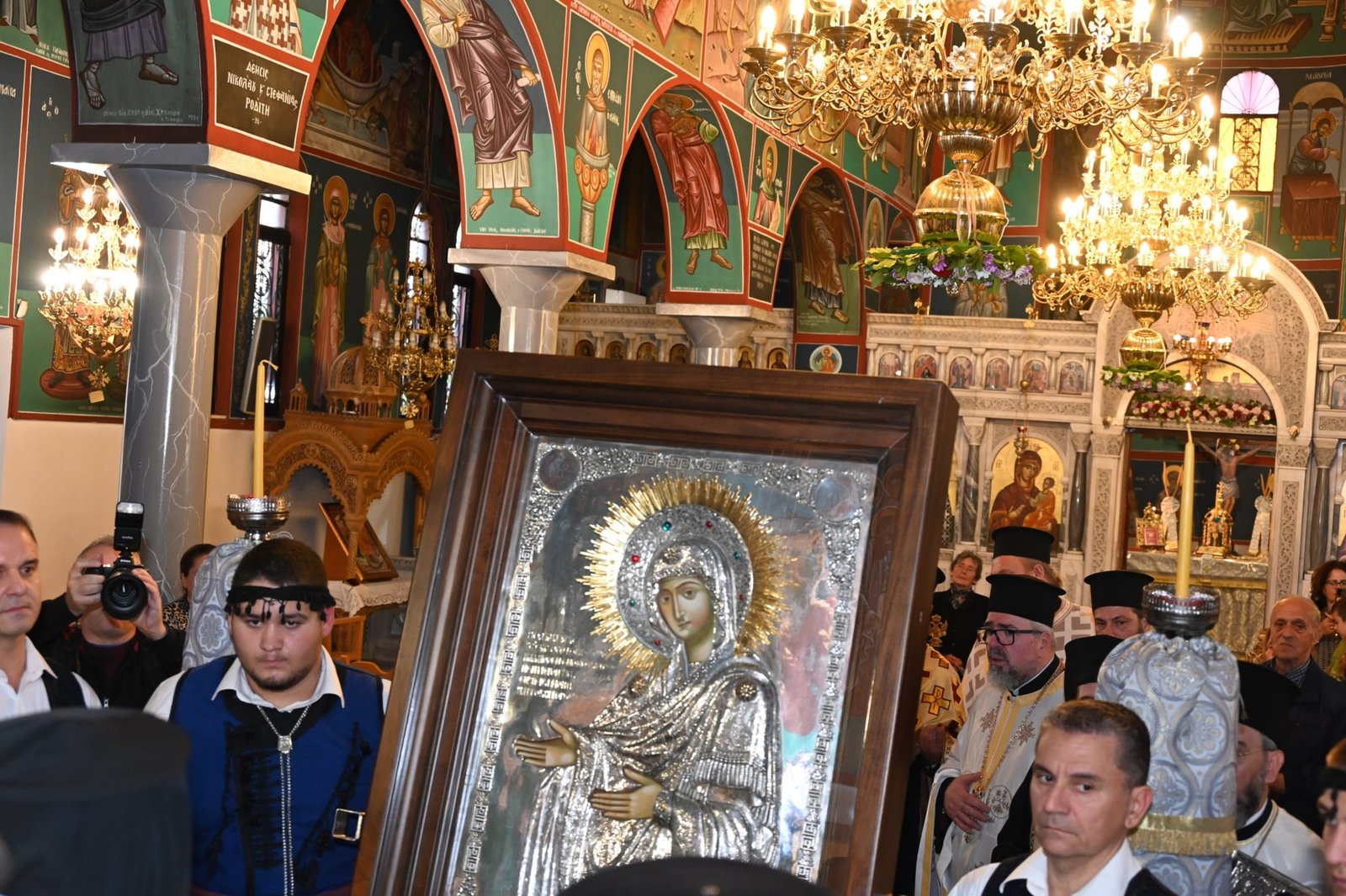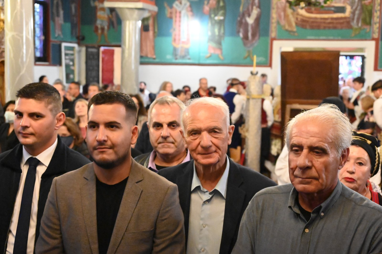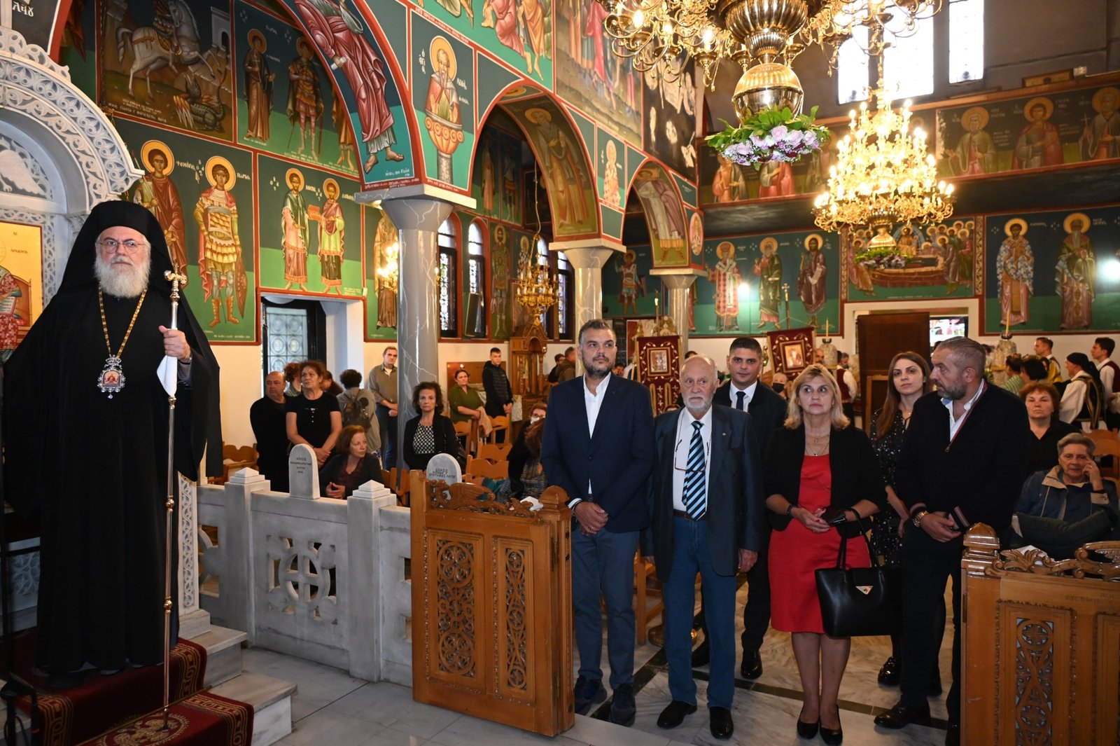 Πλήθος συνδημοτών μας, μέλη της δημοτικής Αρχής, εκπρόσωποι των πολιτιστικών συλλόγων της πόλης μας με τις παραδοσιακές φορεσιές τους αλλά και μαθητές του 5ου Γυμνασίου Αχαρνών ανταποκρίθηκαν στο κάλεσμα του Εκκλησιαστικού Συμβουλίου, του Αρχιμανδρίτη Χρυσόστομου και έσπευσαν να προσευχηθούν και να προσκυνήσουν σε κλίμα πνευματικής συγκίνησης αλλά και χαράς.