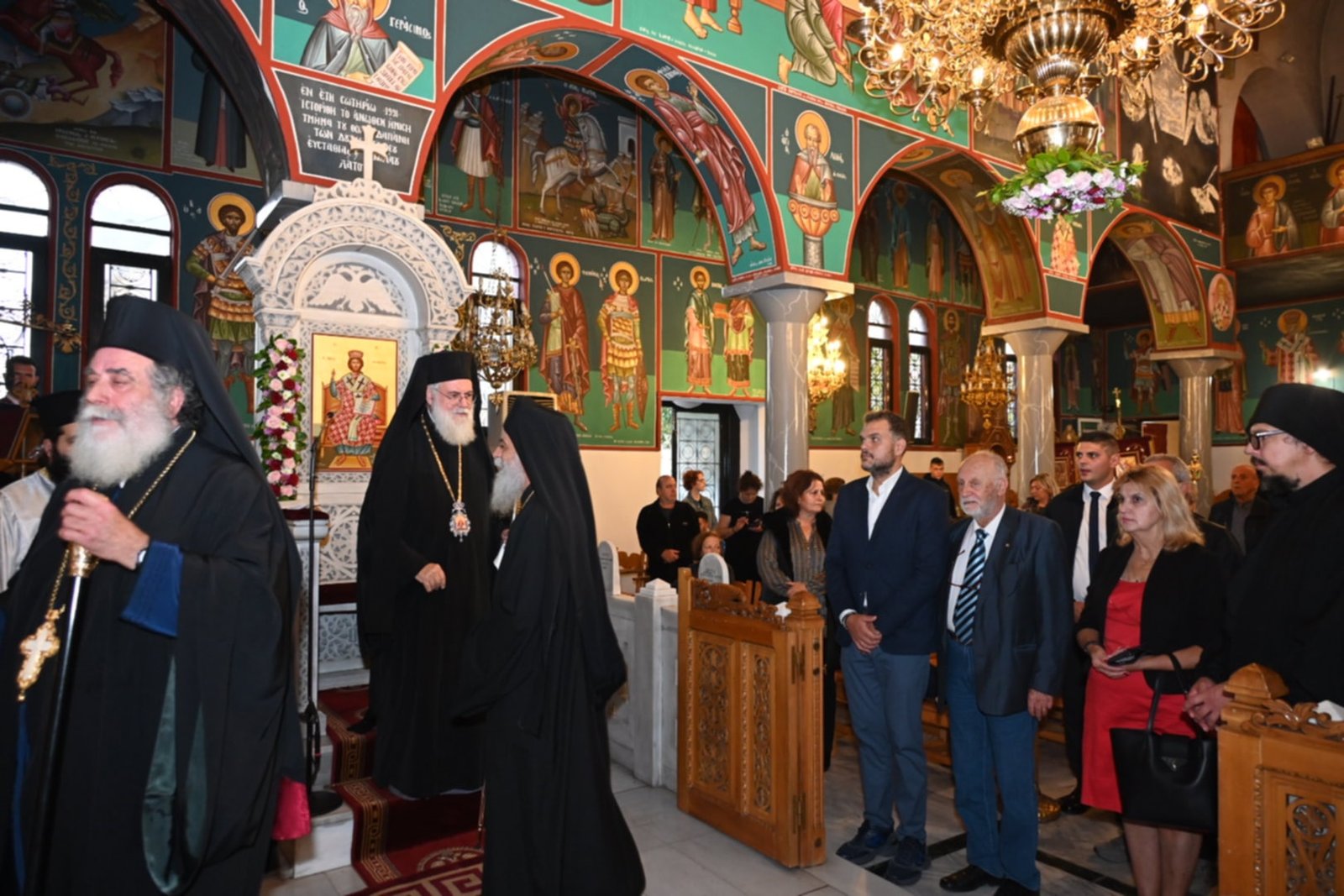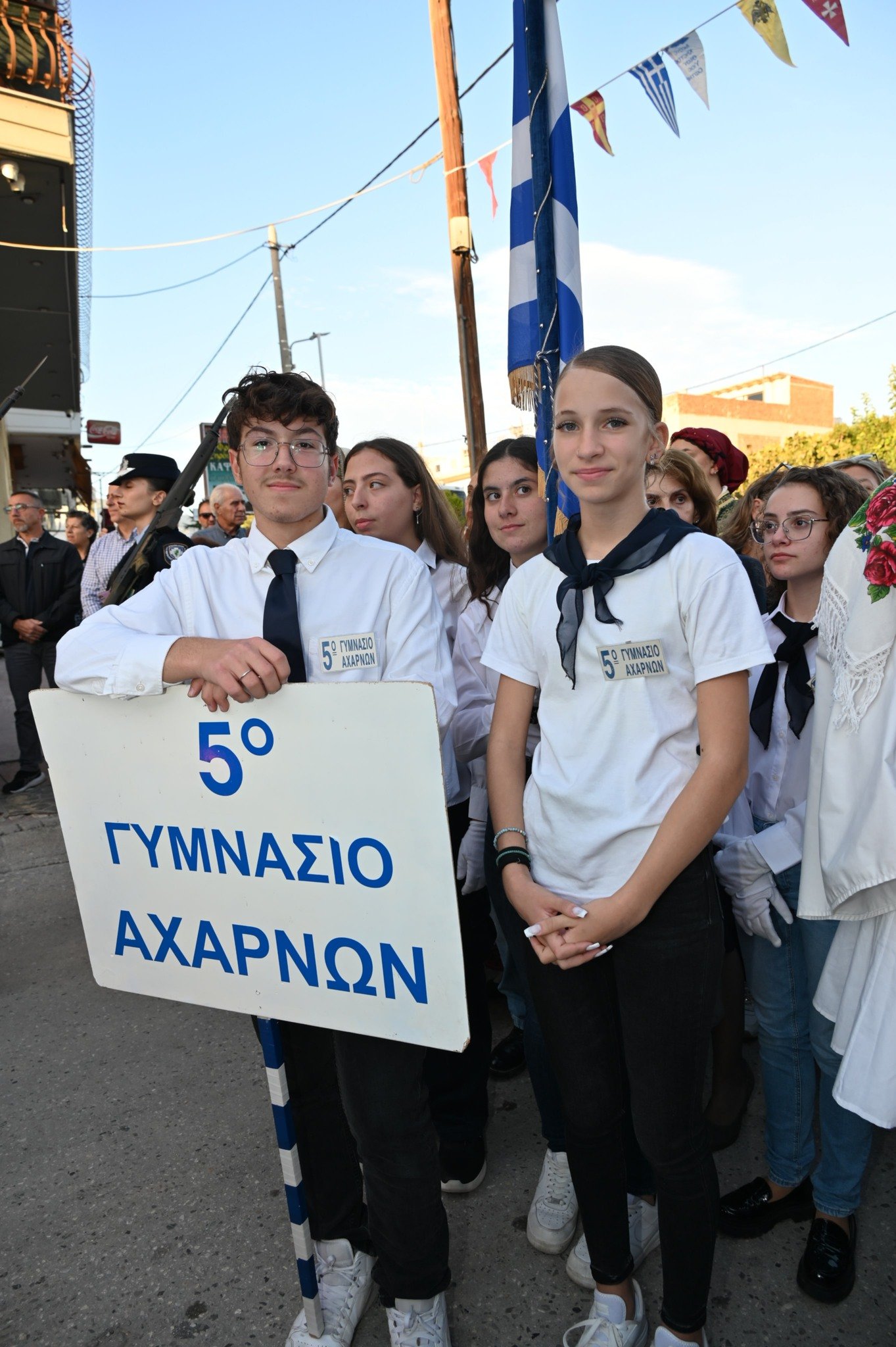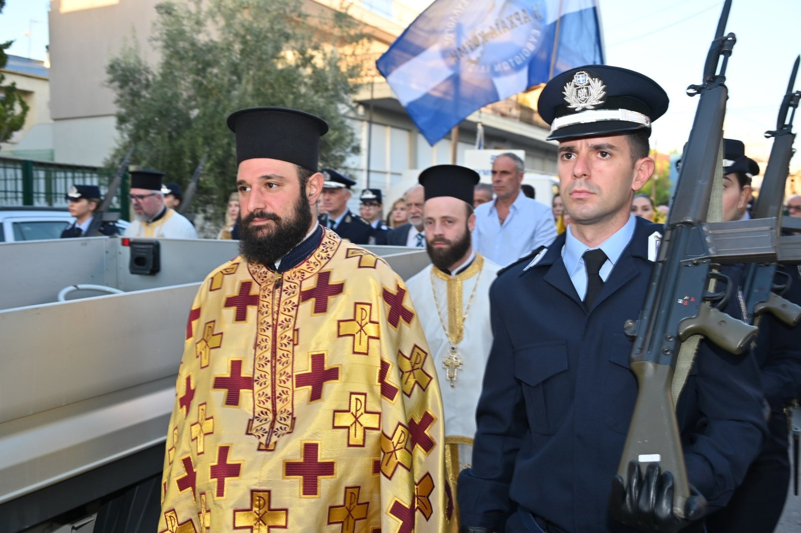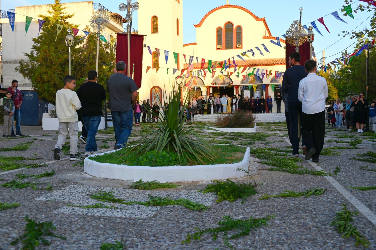 Πλήθος συνδημοτών μας, μέλη της δημοτικής Αρχής, εκπρόσωποι των πολιτιστικών συλλόγων της πόλης μας με τις παραδοσιακές φορεσιές τους αλλά και μαθητές του 5ου Γυμνασίου Αχαρνών ανταποκρίθηκαν στο κάλεσμα του Εκκλησιαστικού Συμβουλίου, του Αρχιμανδρίτη Χρυσόστομου και έσπευσαν να προσευχηθούν και να προσκυνήσουν σε κλίμα πνευματικής συγκίνησης αλλά και χαράς.