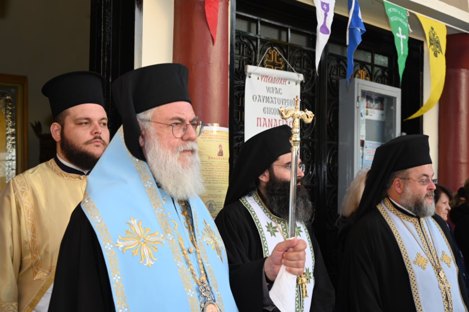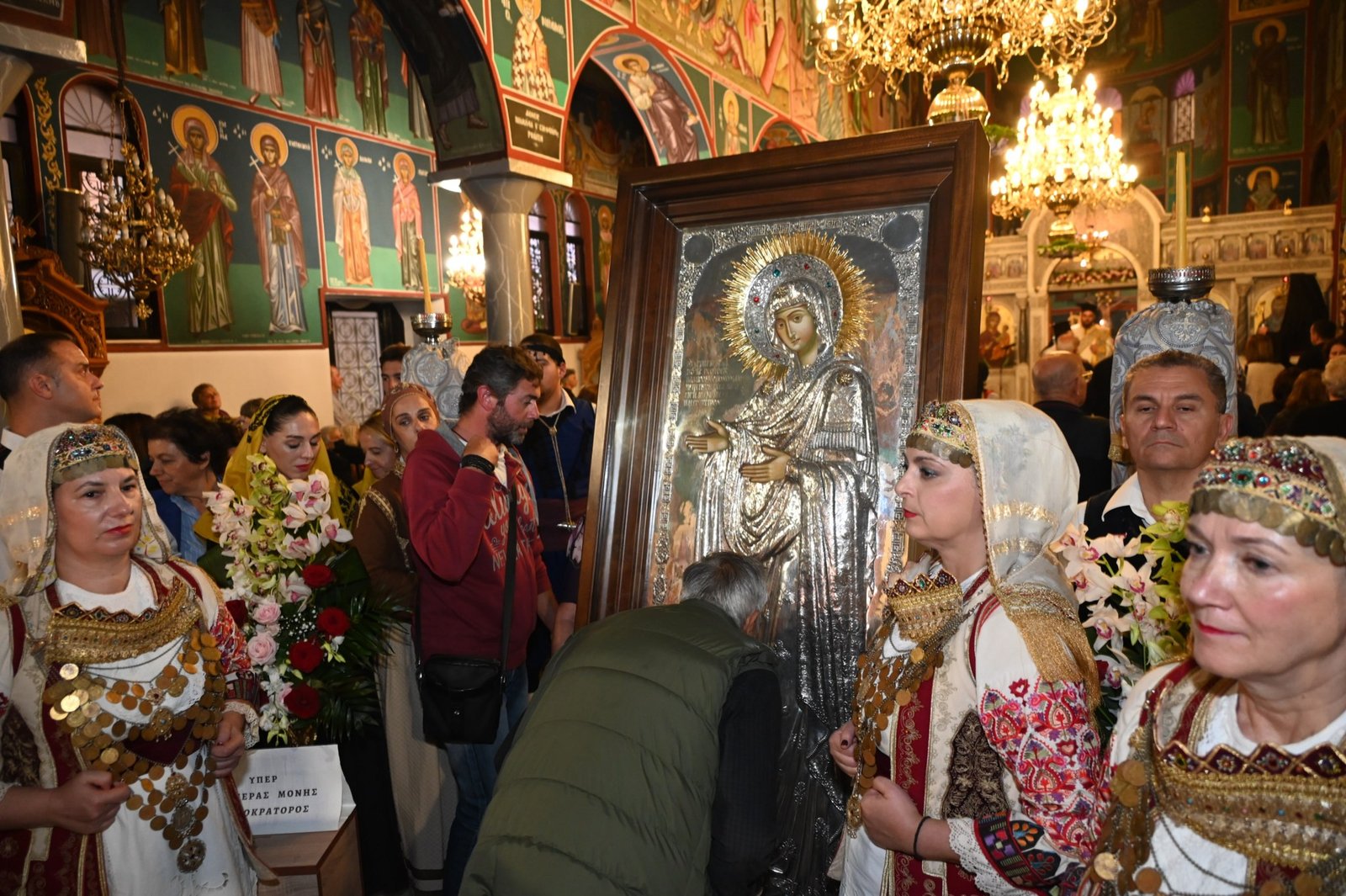 Με μεγαλοπρέπεια και τιμή πραγματοποιήθηκε το βράδυ της Παρασκευής η τελετή άφιξης της Ιεράς Θαυματουργού Εικόνας της Υπεραγίας Θεοτόκου της «Γερόντισσας», Προστάτιδος και εφόρου της Ιεράς Μονής Παντοκράτορος του Αγίου Όρους, υπό του Σεβασμιωτάτου Μητροπολίτη Ιλίου, Αχαρνών και Πετρουπόλεως, στα προπύλαια του Ιερού Ναού Αγίου Διονυσίου Αχαρνών.