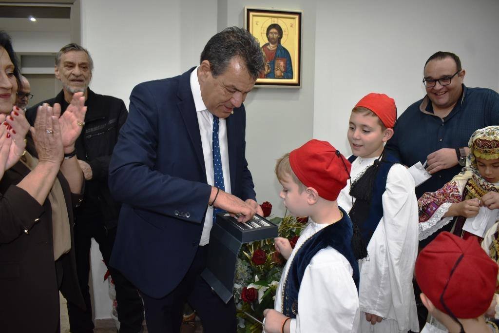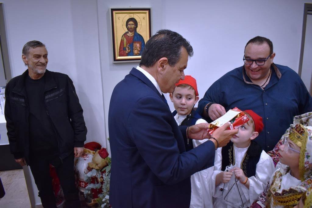 Στη συνέχεια ο Χρήστος Παππούς τους πρόσφερε ως συμβολικό δώρο το γούρι της χρονιάς, ανταλλάσοντας προσωπικές ευχές με τον καθένα και την καθεμία τους χωριστά.