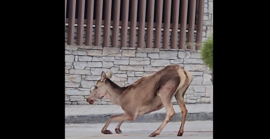 Η Άμεση Δράση αρχικά και ο ΟΦΥΠΕΚΑ και το Δασαρχείο στη συνέχεια απέκλεισαν το σημείο προκειμένου το ζώο να παραμείνει προστατευμένο. Στο σημείο έφτασε η ομάδα πεδίου της ΑΝΙΜΑ, η Μαρία Καλλιντέρη, ο Χρήστος Αποστολόπουρος, η Άννα Μαντά και ο Κωνσταντίνος Ξηρός, με τον κτηνίατρο της οργάνωσης Γρηγόρη Μαρκάκη, ο οποίος αναισθητοποίησε το ελάφι με χρήση εξειδικευμένου εξοπλισμού (pole syringe). Το ζώο έφερε εκτεταμένα τραύματα σε διάφορα σημεία του σώματος του, αποκόλληση του κάτω χείλους του και σοβαρή πάρεση των πρόσθιων άκρων του.
