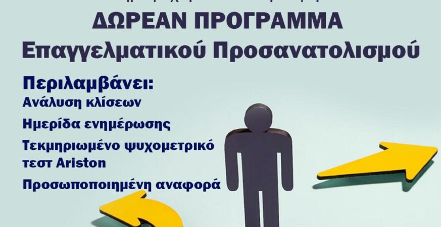 Με την επιστημονική υποστήριξη της Ariston Psychometrics, μιας από τις πιο αναγνωρισμένες εταιρείες στον χώρο της επαγγελματικής καθοδήγησης, με σύγχρονα εργαλεία βασισμένα σε πολυετή έρευνα και εμπειρία.