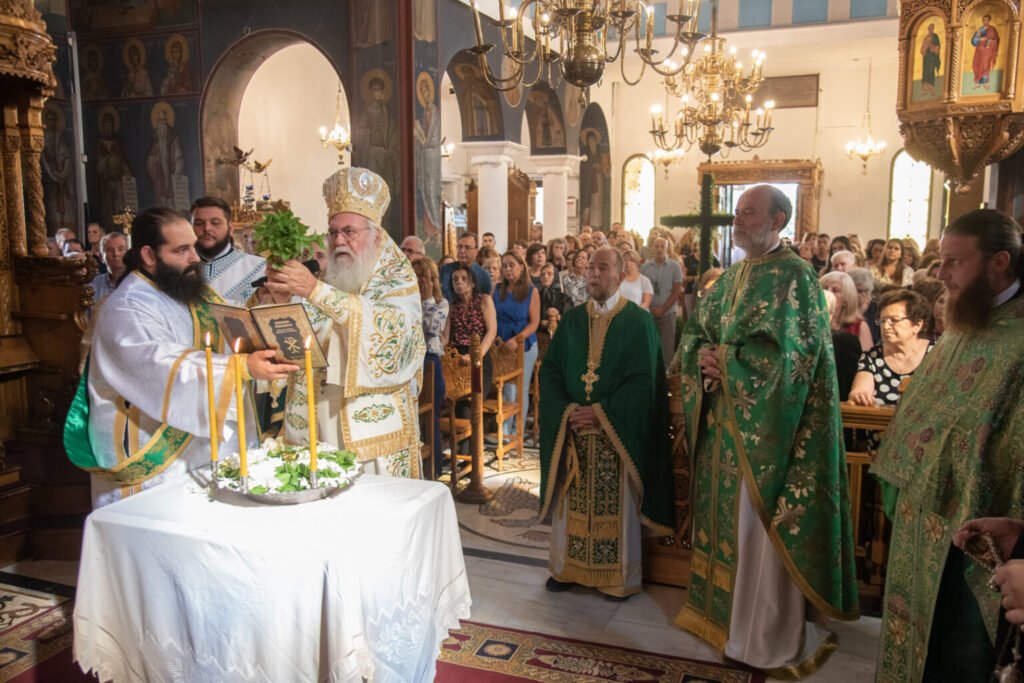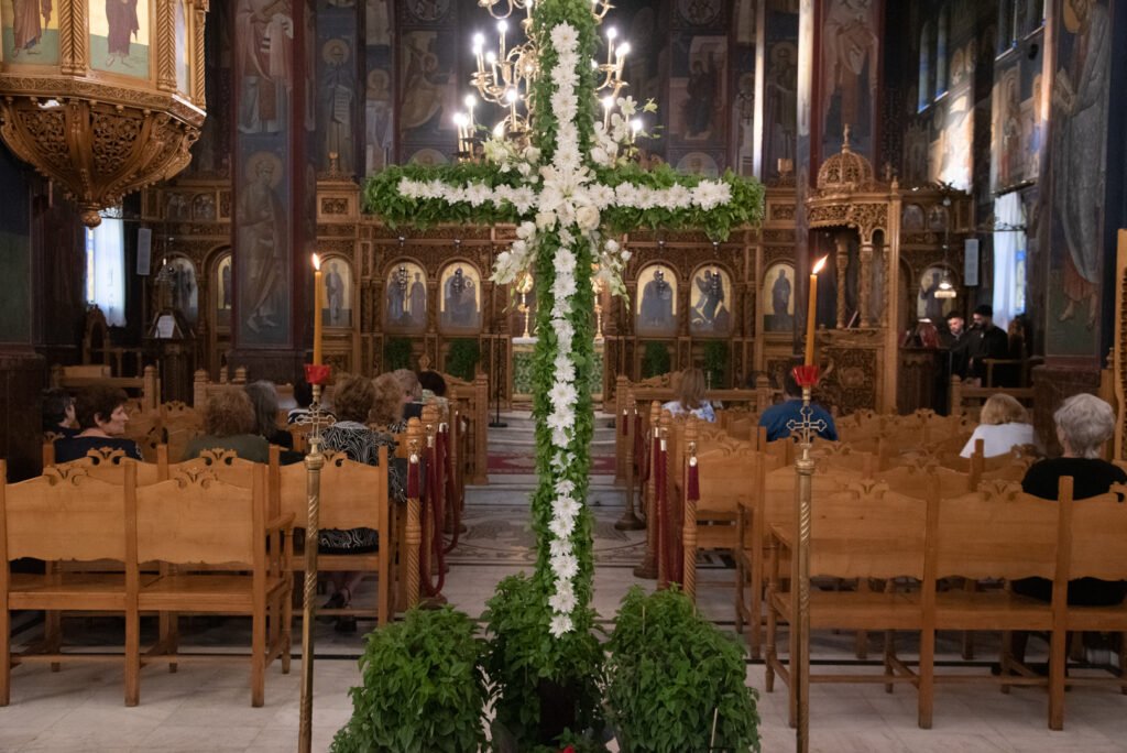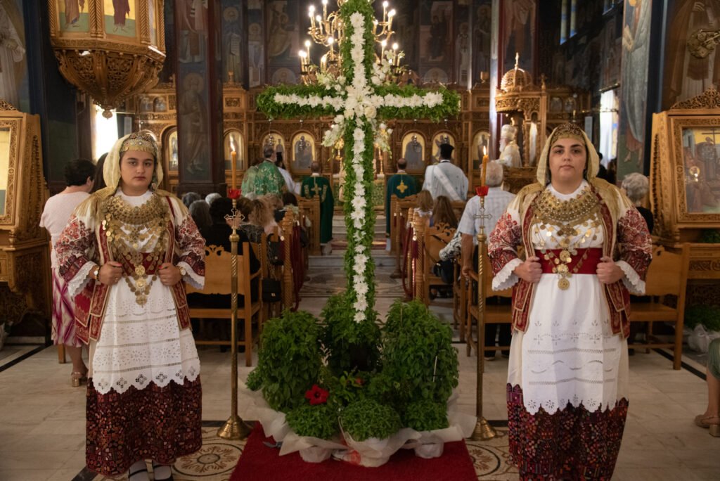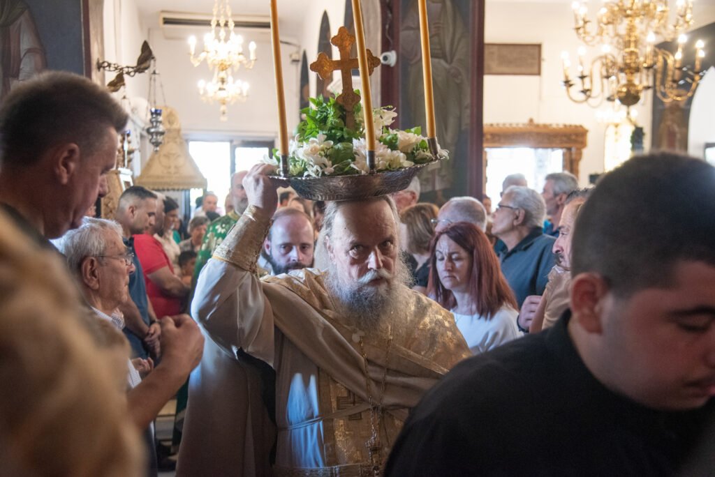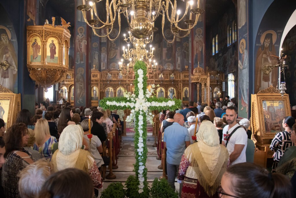 Στον κατάμεστο Ι.Ν. Αγίων Κωνσταντίνου και Ελένης Άνω Λιοσίων συνεχίζονται με λαμπρότητα οι εορτασμοί για την Ύψωση του Τιμίου Σταυρού, στον οποίο ήταν αφιερωμένος ο παλαιός Ναός στο κέντρο της πόλης.