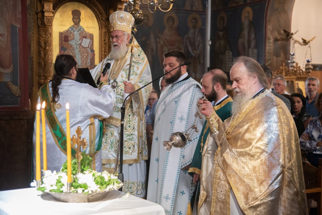 Στην Πανηγυρική Θεία Λειτουργία προεξήρχε ο Σεβασμιώτατος Μητροπολίτης Ιλίου, Αχαρνών και Πετρουπόλεως κ. Αθηναγόρας, συμπαραστατούμενος από τον Αρχιερατικό Επίτροπο Φυλής και Αχαρνών και προϊστάμενο του Ναού Πανοσιολ. Αρχιμ. Τίτο Χρήστου, τους ιερείς του Ναού και ιερείς της Μητρόπολης Ιλίου.